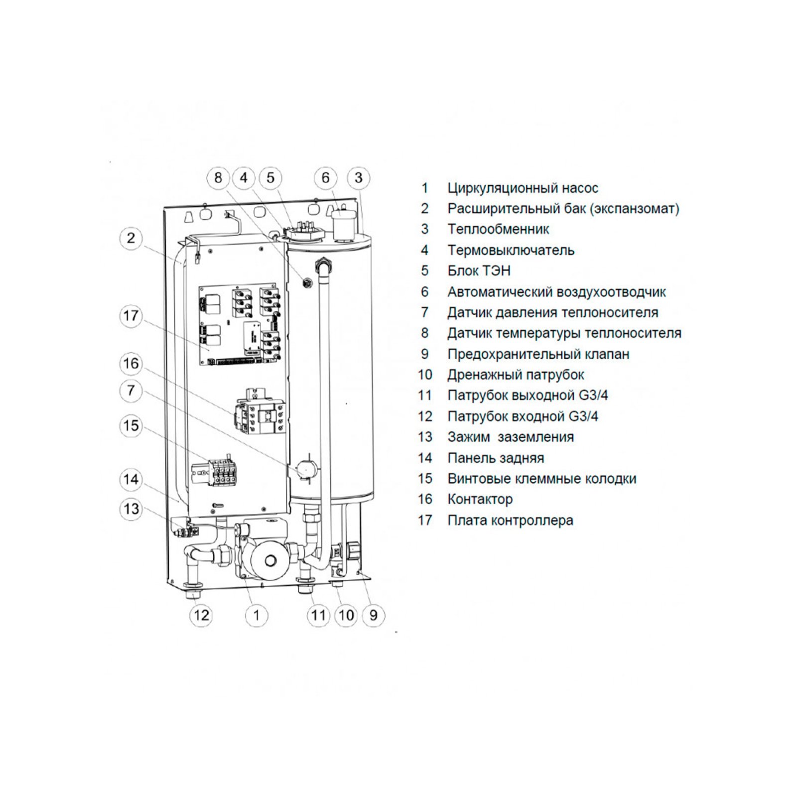 2. Можно считать полноценной мини-котельной: встроенный циркуляционный насос, емкий расширительный бак на 12 л. И автоматический воздухоотводчик.