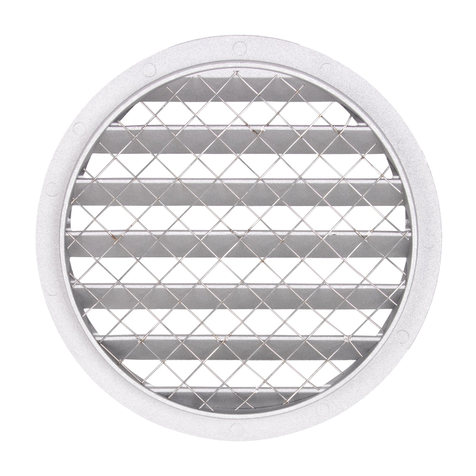 Алюминиевая наружная решетка для круглых каналов предназначена для перекрытия входных внешних отверстий соответствующего диаметра. Решетка препятствует попаданию в воздуховоды воды, а также, за счет установленной сетки, различных предметов.