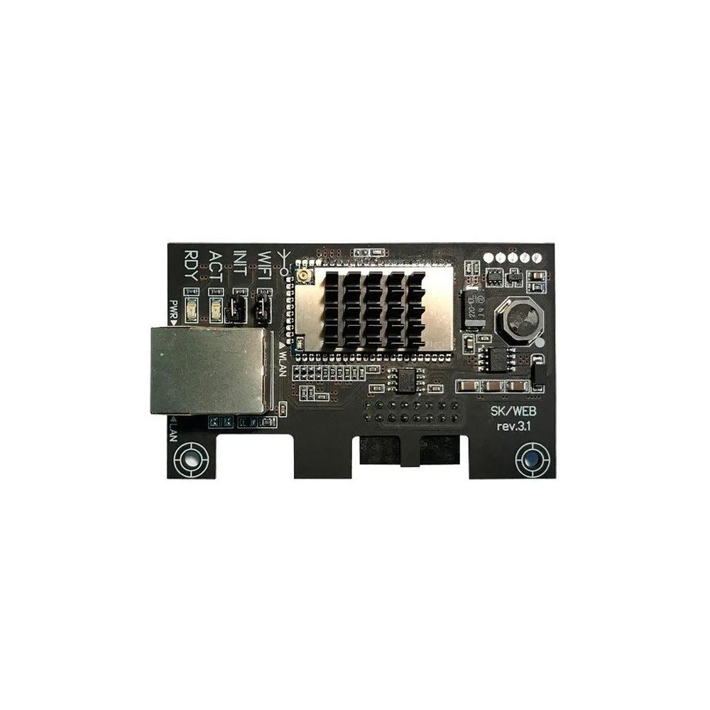Плата WEB предназначена для удаленной диспетчеризации приборов управления насосами SK-712 и SK-FFS по сети Ethernet или Wi-Fi (протокол Modbus TCP, HTTP/WEB). Устанавливается в интерфейсный разъем общего контроллера системы (КС) расположенного на двери прибора или в порт «EXT» прибора управления SK-712/d-2-5,5 (12А). Для работы с платой WEB в сети Ethernet через разъем RJ-45 необходимо произвести ее настройку при помощи компьютера и программы sk_ipconfigweb.exe, размещенной на сайте wilo-sk.ru раздел «Продукция АРМ SK-712». Настройку можно произвести также при помощи беспроводной сети Wi-Fi.