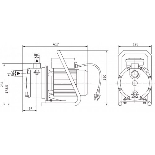 Переносной самовсасывающий одноступенчатый горизонтальный струйный насос для перекачивания воды в режиме всасывания и подвода. Напрямую присоединенный фланцами электродвигатель однофазного или трехфазного тока; в исполнении для однофазного тока со встроенным термическим защитным выключателем электродвигателя и конденсатором, а также отдельным выключателем ВКЛ./ВЫКЛ. Насос готов к подключению и включает в себя несущую раму и соединительный кабель длиной 2 м со штекером с защитным контактом; идеально подходит для переносной эксплуатации в саду или для различных увлечений. В исполнении для трехфазного тока подключение выполняется через клеммную коробку.