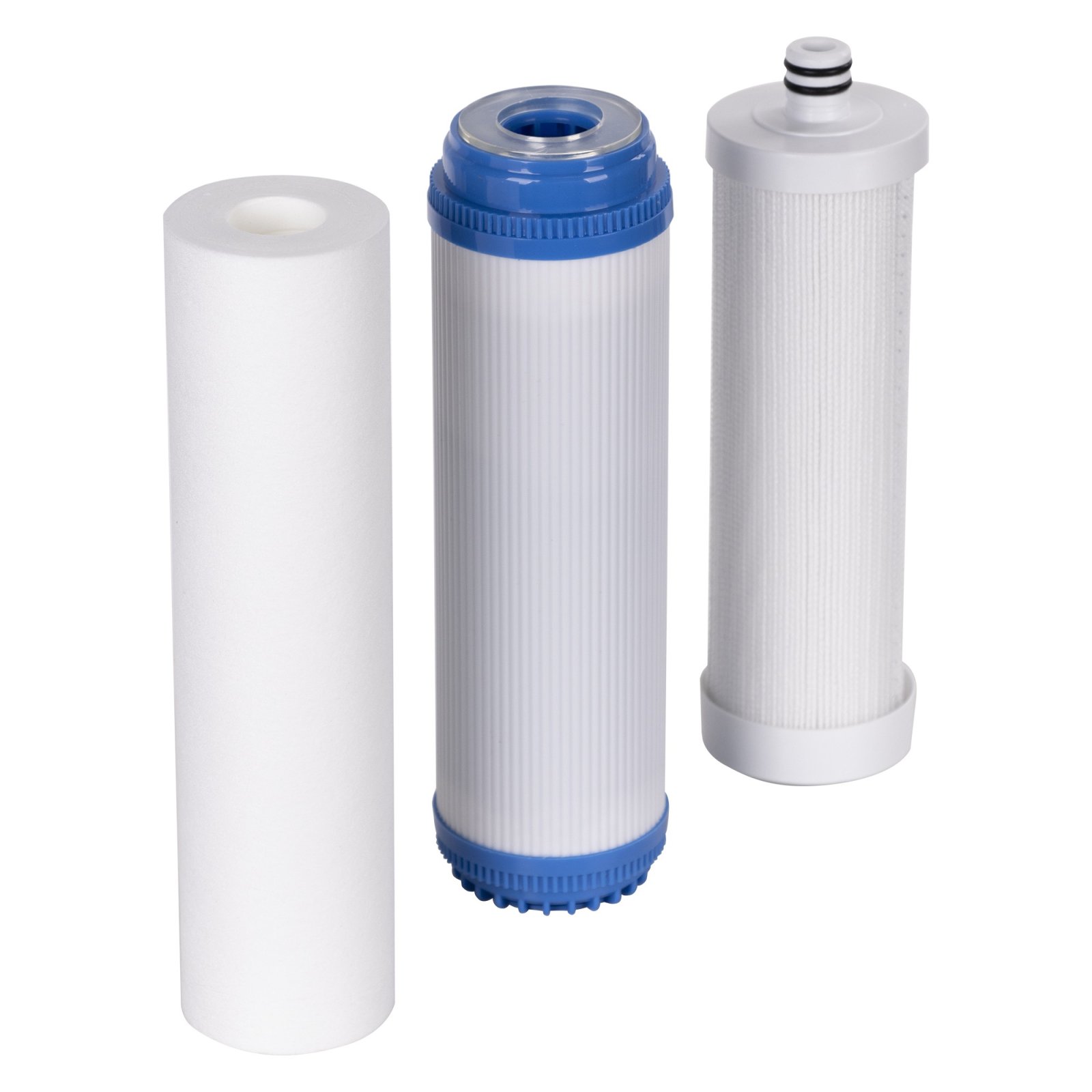 Механический фильтр с градиентной структурой. Срок службы увеличен на 30% по сравнению с аналогичными ступенями очистки. За счет градиентной структуры степень фильтрации меняется с 10 до 5мкм по мере прохождения воды через фильтр, что позволяет задействовать всю площадь фильтрующего элемента и распределить загрязнения более равномерно не забивая верхние слои.